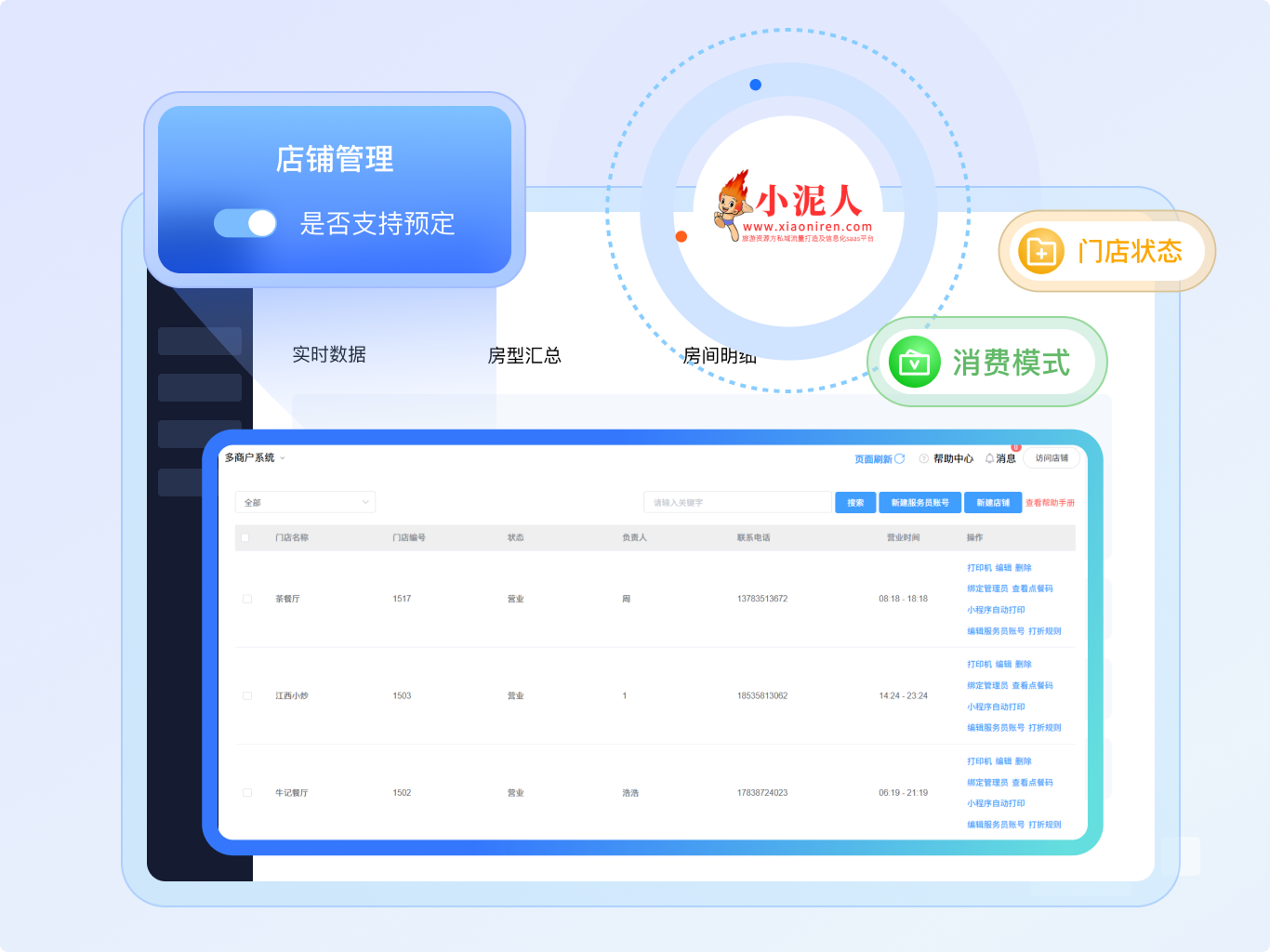 - 门店管理:新建店铺,设置店铺信息、门店状态