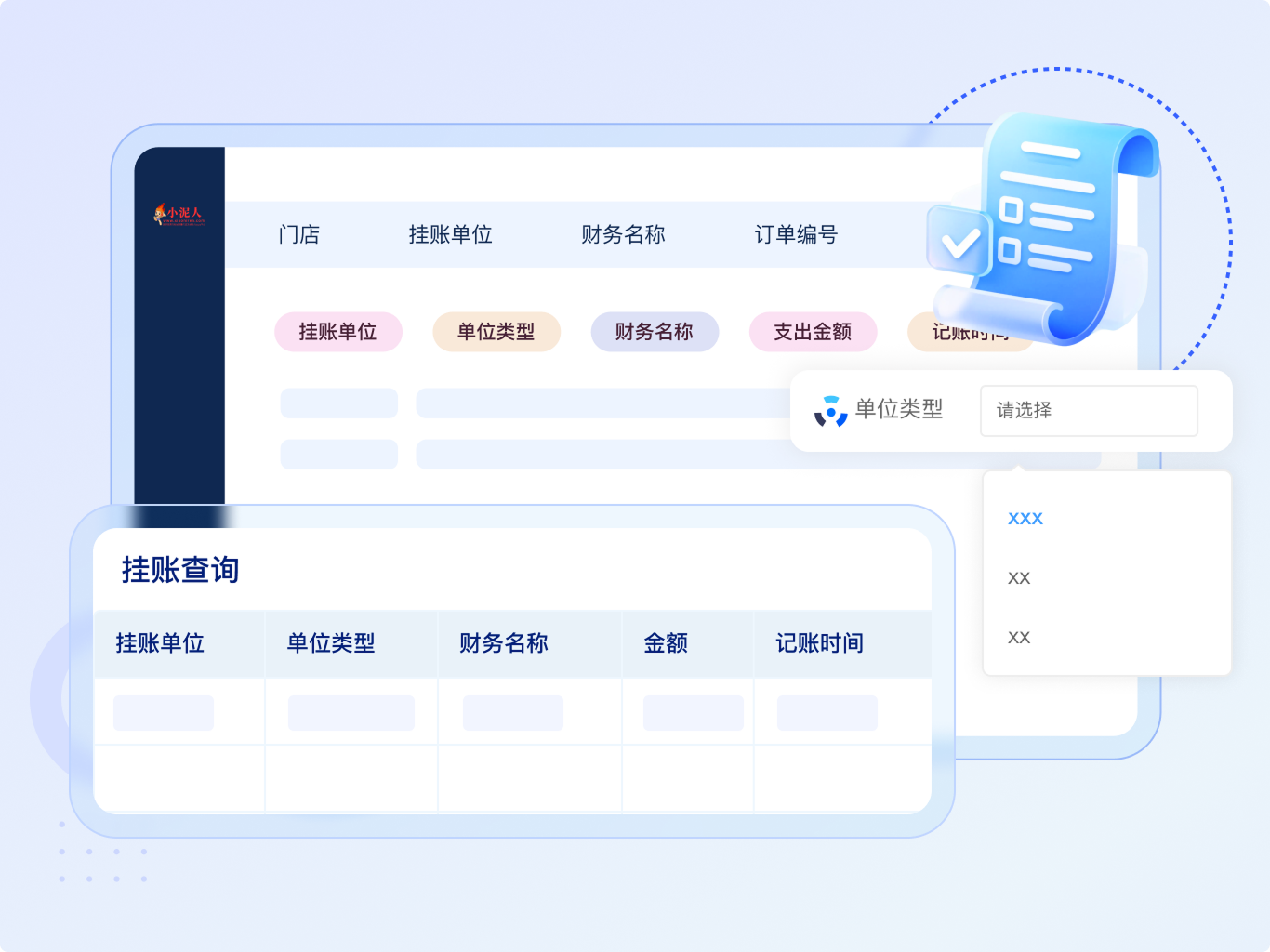 - 餐饮财务:新建桌台、设置人数及桌台不同状态、支持不同日期和时间段预定桌台