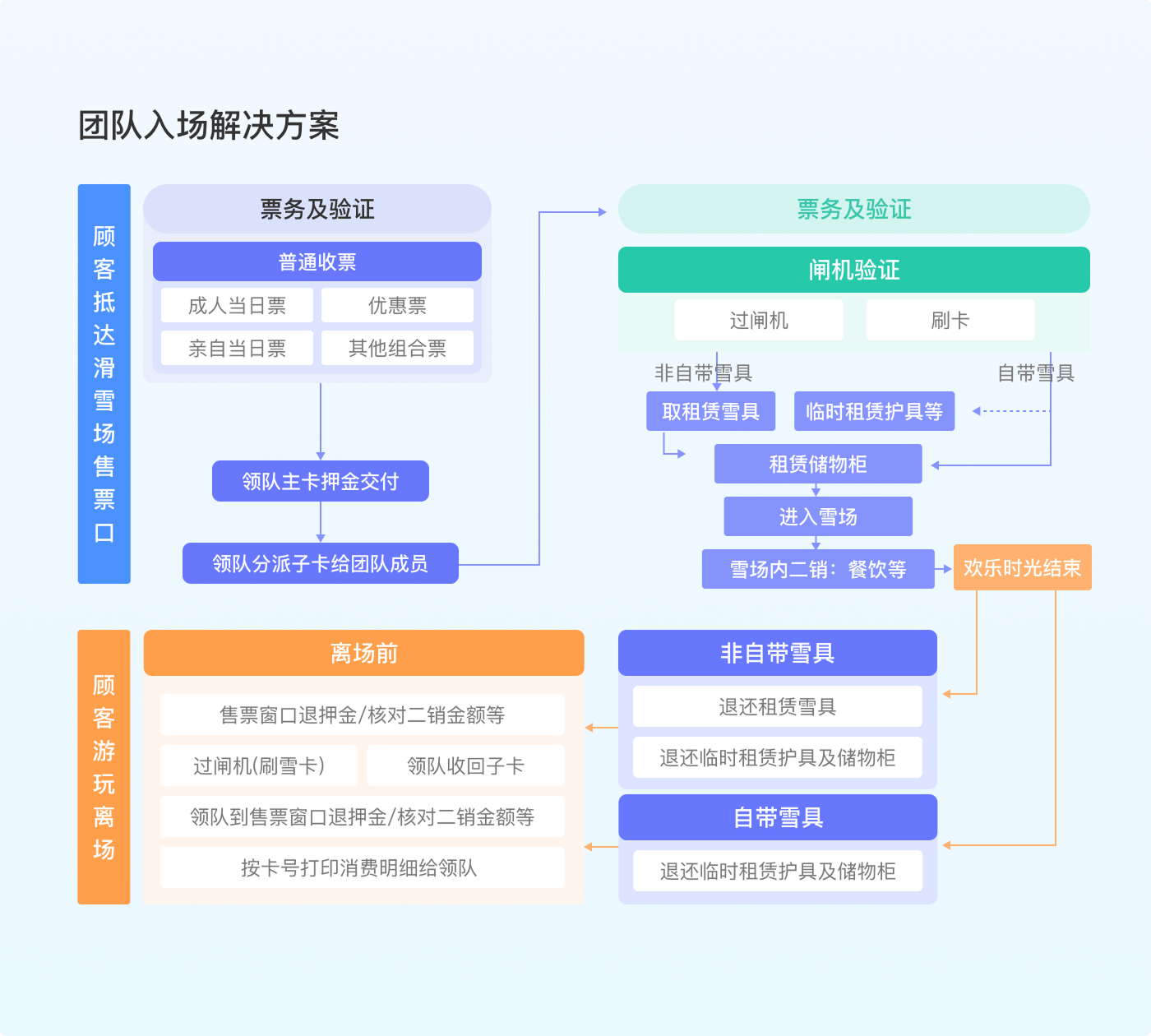 支持滑雪场各类游客群体的精细化运营与管理,为不同来源、不同消费模式的游客提供灵活适配的解决方案