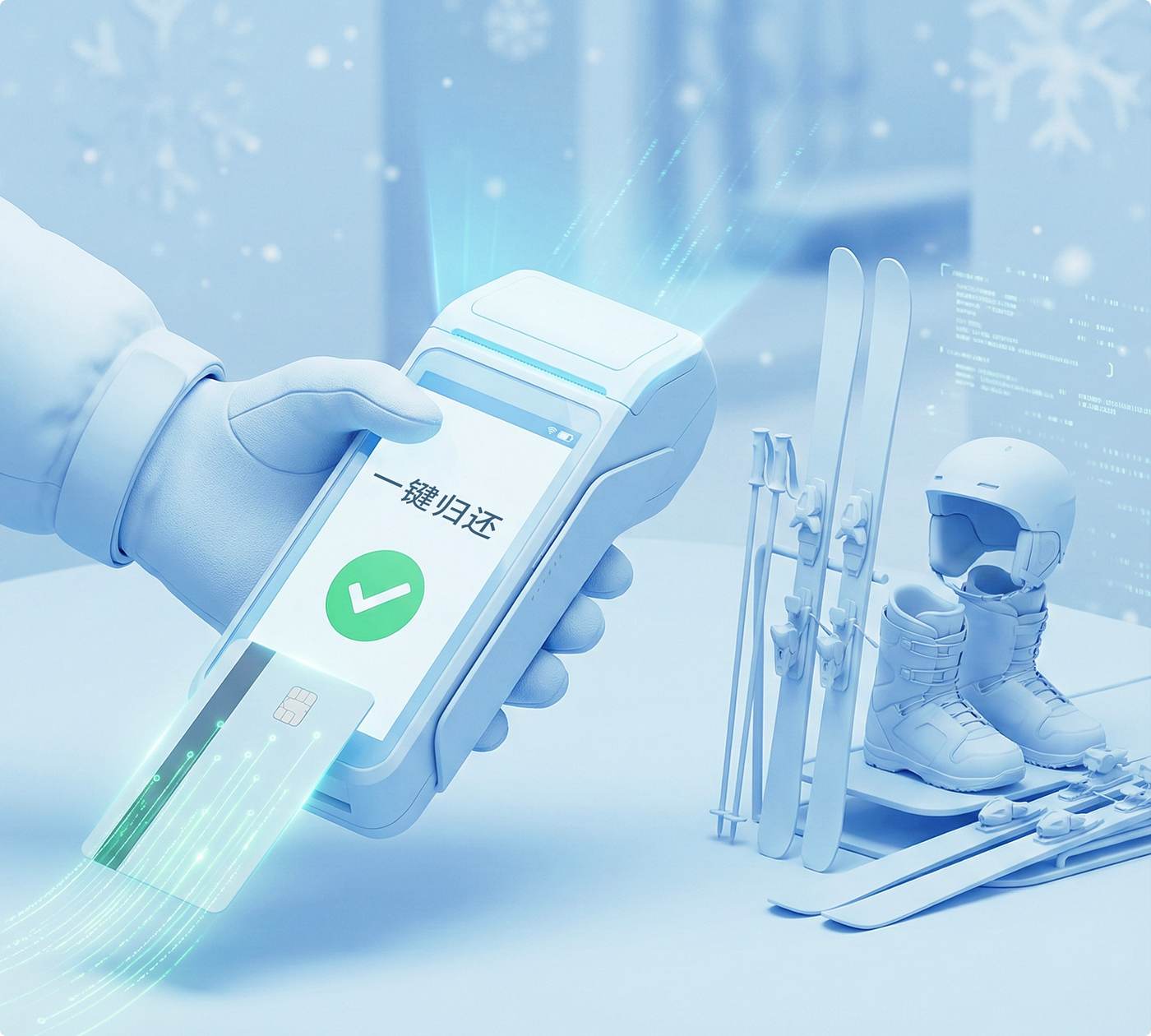 一键激活,即刻启滑,高效租赁系统让雪具领取快人一步