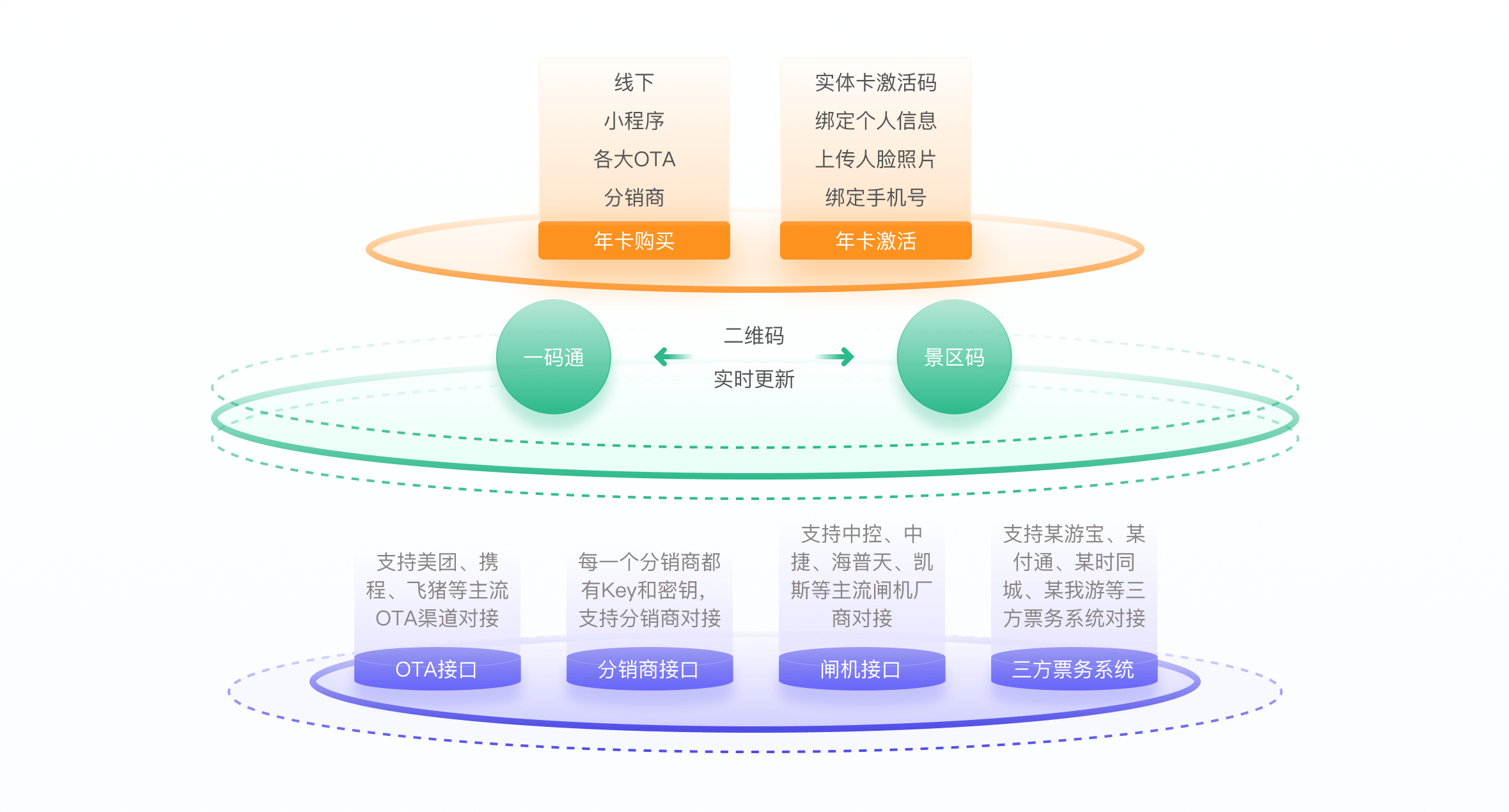- 三方票务系统:支持某游宝、某付通、某时同城、某我游等三方票务系统对接
